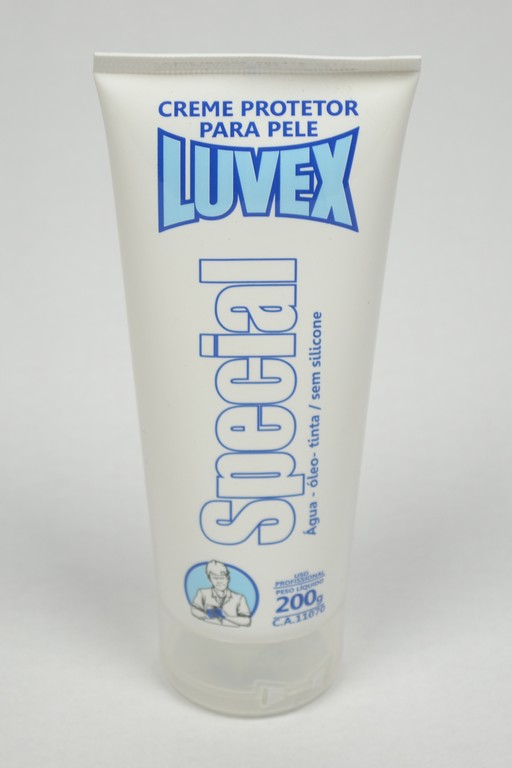 LUVEX SPECIAL é um creme protetor para a pele resistente à água, óleo, pintura e cola que, quando aplicado, forma uma película protetora contra o ataque agressivo de produtos químicos tais como tintas, solventes (querosene, aguarraz) e substâncias similares, óleos, graxas, cimentos, colas, pós, resinas e outros produtos. Além disso, permite uma fácil remoção das impurezas, com uma simples lavagem da pele.