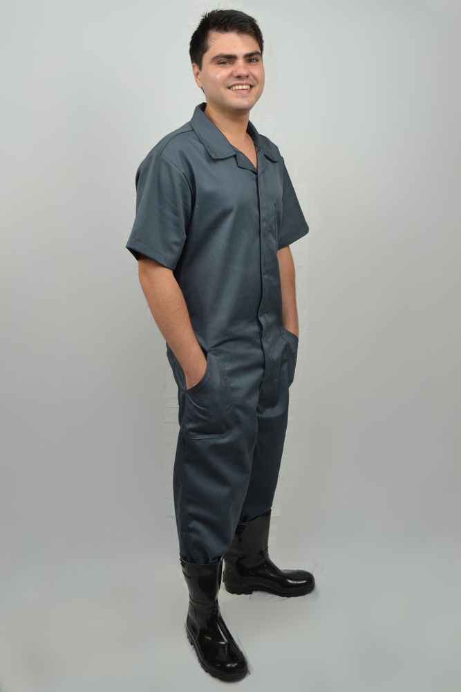 Macacão profissional com fino acabamento, com costuras travetadas nas áreas mais agredidas pelo uso cotidiano afim de garantir maior durabilidade. Personalizável, possui opções com recortes, detalhes, filetes e outras variáveis de acabamento.