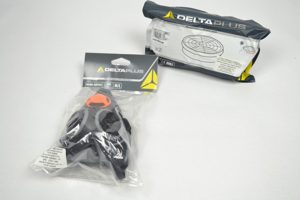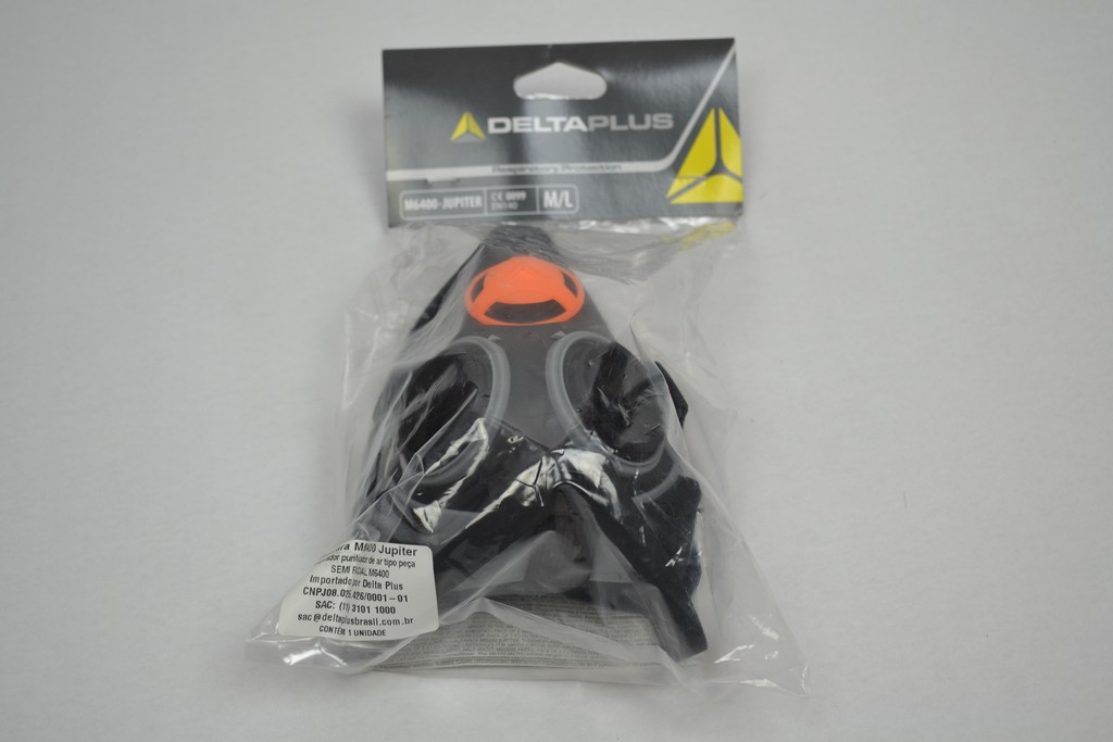 Respirador semifacial com manutenção, estrutura em polipropileno e borda em elastômero de borracha (TPE). Válvula de exalação em polipropileno com membrana de borracha. Tirantes ajustáveis em elastano. Para uso com 2 filtros da série M6000, vendidos separadamente.